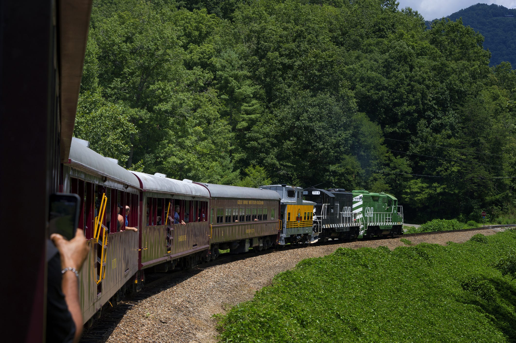A train ride rather than a turn in a river thrills passengers in North Carolina, where Great Smoky Mountain railroad engines chug through the Nantahala National Forest. It’s an expanse of dense old-growth woodlands and plunging waterfalls.